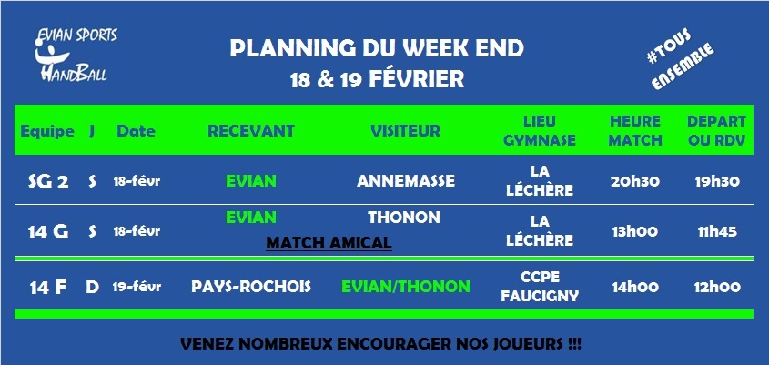 Les différentes équipes rencontrons les clubs suivants : Annemasse HBC, Handball Pays Rochois, TAC Handball
